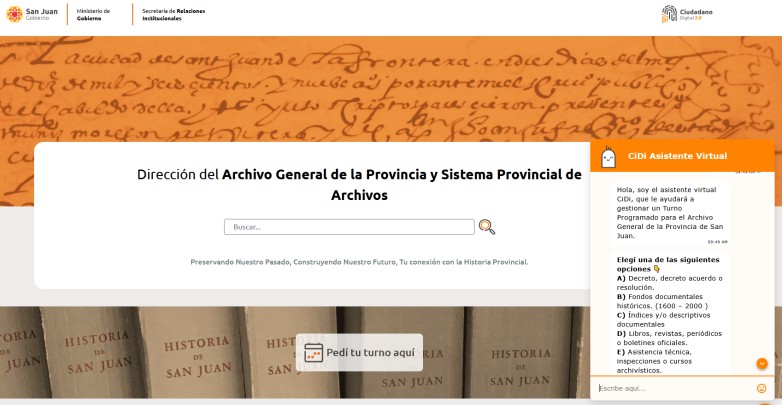 - Hacer click en el apartado “Pedí tu turno aquí”, el cual activará el asistente virtual de CiDi en el costado derecho de la plataforma.