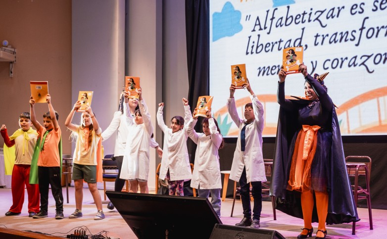A través de una representación con música y narración, los alumnos, una docente, una “bruja malvada” y niños súper héroes interpretaron cómo las palabras pueden transformar la vida de las personas y conectar el aula con el mundo, reflejando el espíritu del plan que atraviesa todos los niveles educativos de la provincia.
