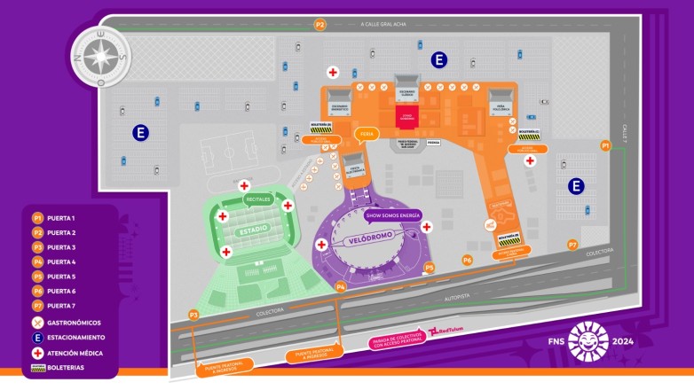 La puerta 1 está ubicada en calle 7, a metros se encuentra la boletería C que permite el ingreso al público general a la feria y conecta con el escenario local La Peña.