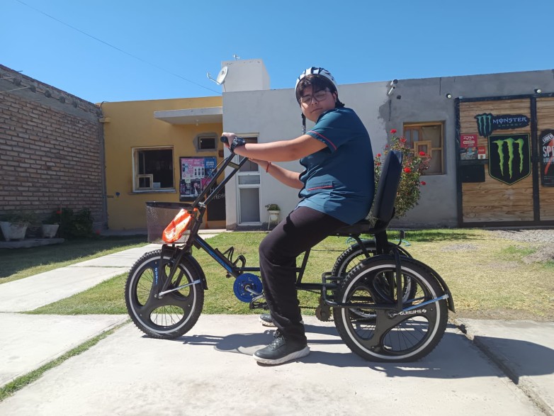 La primer tricicleta con kit de seguridad vial la recibió Ramiro Ponce, de 12 años. Este estudiante de secundario de la Escuela Juan Larrea, en San Martín, añoraba poder trasladarse de su casa al establecimiento -unas 15 cuadras- en bicicleta común, pero por su condición física en los pies, le era imposible pedalear. Ahora con la movilidad adaptada no tiene inconvenientes.