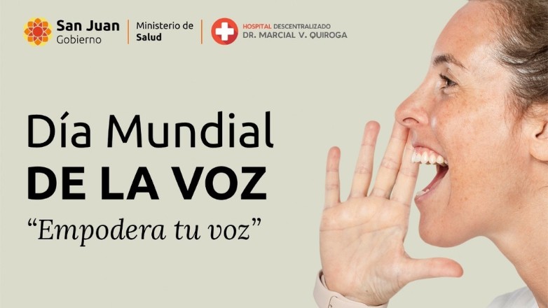 Empodera tu voz es el lema de este año para la campaña nacional del Día Mundial de la Voz, que se conmemora el 16 de abril, y la campaña preventiva de patología de la Voz en San Juan. Ambas son actividades científicas y asistenciales que se desarrollarán durante abril y mayo en el Hospital Marcial Quiroga, organizadas por el Servicio de Otorrinolaringología y Fonoaudiología, con el aval del Ministerio de Salud y Educación de la provincia.