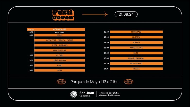 One TV San Juan > Blog > San Juan > FestiJoven presenta la grilla con los horarios de los artistas que actuarán