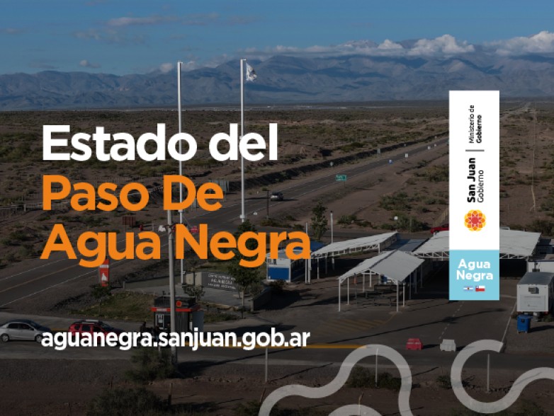 El Ministerio de Gobierno, a través de la Secretaría de Relaciones Institucionales, informa que el Paso Internacional por Agua Negra, Ruta Nacional 150, se encuentra Habilitado para circular de 07:00 a 17:00 hs.