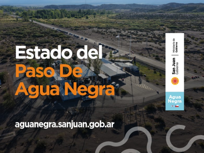 El Ministerio de Gobierno, a través de la Secretaría de Relaciones Institucionales, informa que el Paso Internacional por Agua Negra, Ruta Nacional 150, se encuentra Habilitado para circular de 07:00 a 17:00 hs.