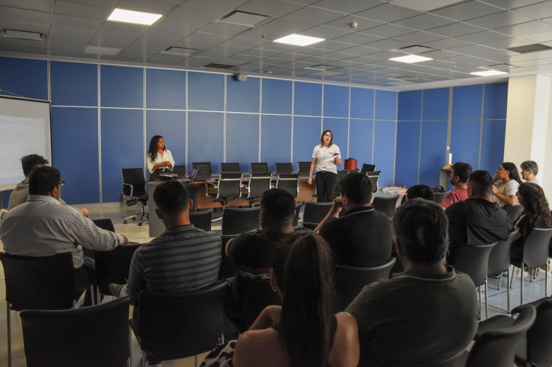 Las disertaciones estuvieron a cargo de Alejandra Senigaglia y Mariana Campus, integrantes del Departamento de Higiene y Seguridad de la Dirección de Policía de Trabajo de la Subsecretaría —ambas representantes provinciales en la mesa Pro.Na.Pre—, junto a Rosario González, profesional de la Superintendencia de Riesgos del Trabajo.