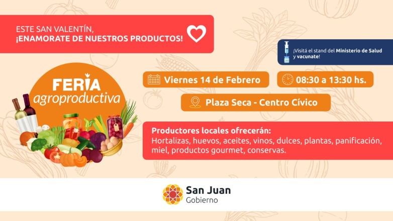 Durante la mañana del Día de los Enamorados, a partir de las 8.30 horas y hasta la hora 13, cerca de 70 productores de toda la provincia ofrecerán una amplia variedad de productos seleccionados especialmente para la ocasión que se sumarán a los clásicos.