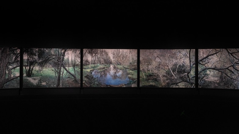 La instalación configura un paisaje imponente de 45 metros lineales distribuidos en 15 paneles de 3×2 metros. Realizada en plastilina —el material característico del Grupo Mondongo—, la pieza surge de un viaje de los artistas a Entre Ríos, donde se sintieron impactados por la naturaleza cruda de la región y sus inundaciones. La obra es al mismo tiempo un inventario de todas las posibilidades matéricas de la plastilina exploradas por los artistas y una reflexión sobre el género paisajístico.