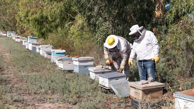 Autoridades de la Dirección de Desarrollo Agropecuario de la Secretaría de Agricultura, Ganadería y Agroindustria, a través del área apícola, visitaron el apiario de la Escuela de Fruticultura y Enología.