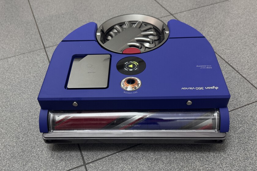 Pero no solo es cuestión estética, también dispone de elementos clave diferentes a la norma. Por ejemplo, carece de cepillo lateral (aunque ya veremos que lo sustituye por otra cosa), dejando toda la labor de aspiración a un rodillo central que ocupa prácticamente todo el ancho, de modo que por donde pasa, aspira sin dejar rendijas.