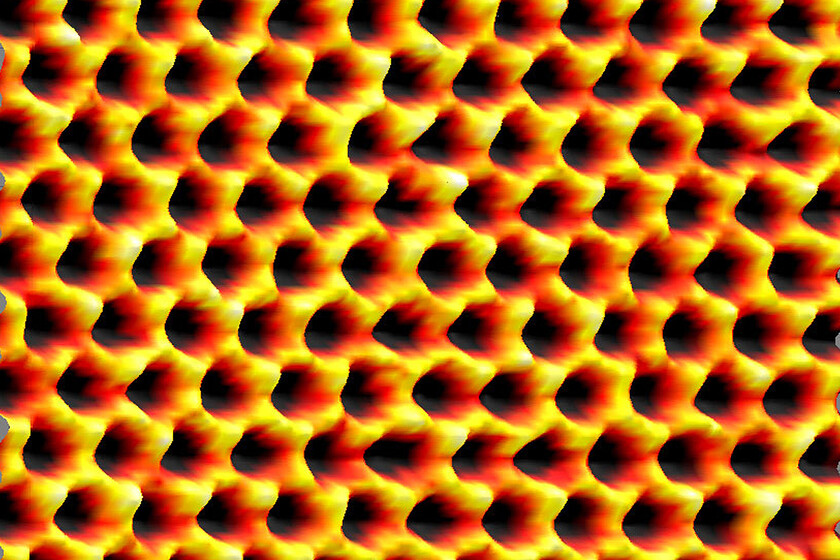 La imagen que publicamos en la portada de este artículo es una representación real del grafeno. De hecho, ha sido tomada utilizando un microscopio de sonda de barrido. El grafeno está constituido por una lámina de átomos de carbono con un espesor de un solo átomo organizados en una estructura con un patrón hexagonal. Sin embargo, este no es el punto de partida de los investigadores del MIT. Al menos no del todo. Y es que se han dado cuenta de que al distribuirlo en una pila de cinco capas con un patrón romboédrico adquiere unas propiedades fisicoquímicas muy peculiares.