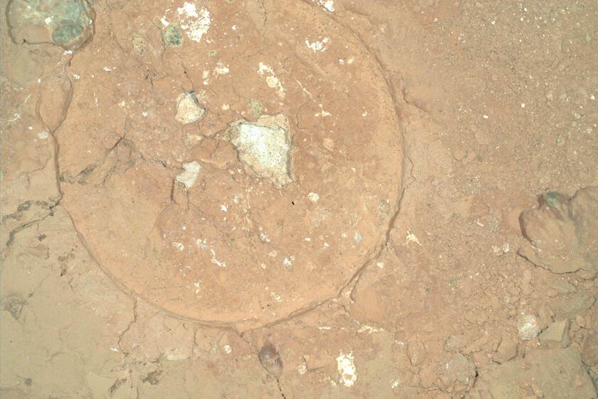 ¿Qué otra opción hay? La mancha bien podría ser el resultado de antiguas interacciones entre los minerales del suelo y el agua del cráter Jezero, que en el pasado albergó un lago, sin la intervención de microorganismos vivos.