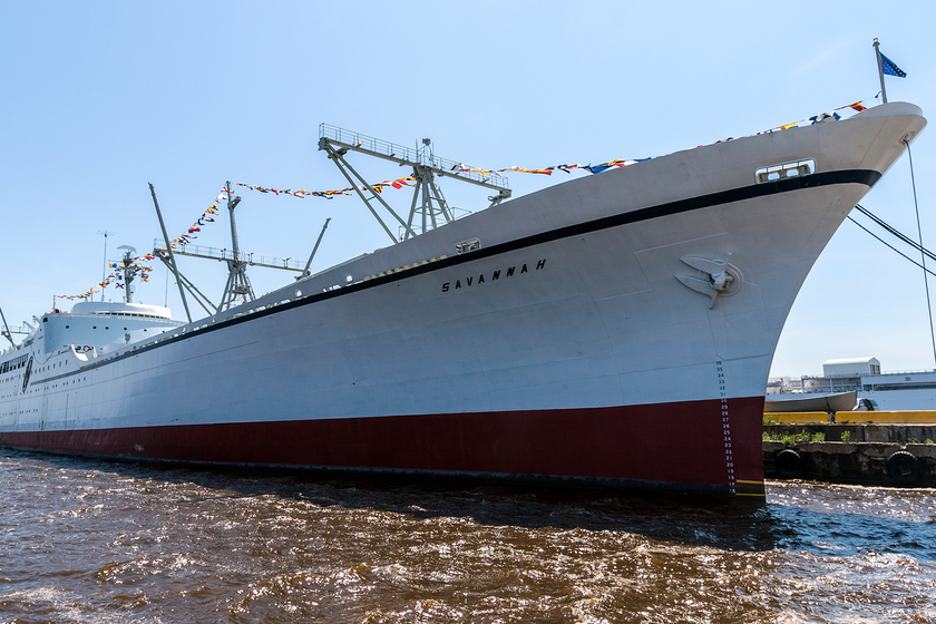 La quilla del NS Savannah fue colocada en un astillero en Camden, Nueva Jersey, en 1958, y el barco realizó su viaje inaugural en 1962. Tenía 181,8 metros de largo y una manga de 24 metros, con un desplazamiento de 19.800 toneladas. Contaba con una serie de comodidades que no existían en otros buques mercantes, como treinta camarotes con aire acondicionado, comedor para 100 personas, bar con vistas a una piscina exterior, todo con diseño que inspiraba lujo.
