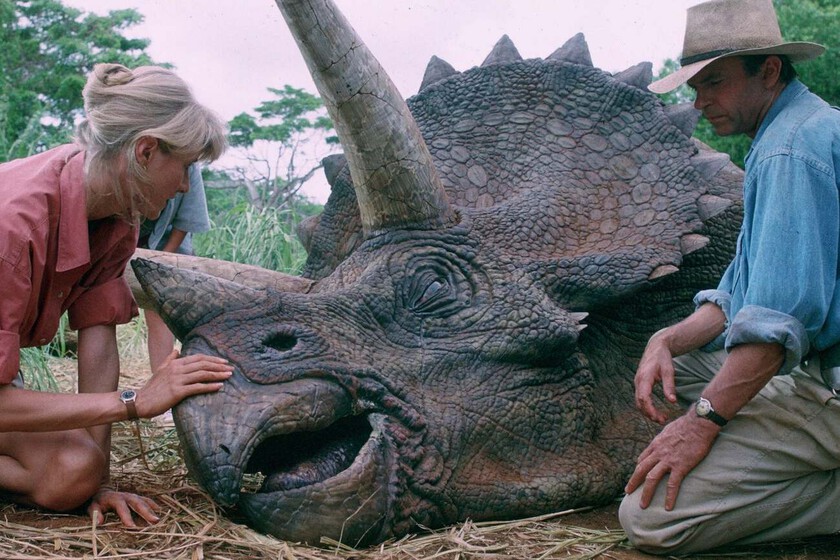 ‘Tiburón‘, que puedes ver en Netflix y en Filmin, es una película acerca de cómo la fuerza de la naturaleza puede arrollar al ser humano de forma imprevista y sin ninguna piedad, y algo de eso hay también en ‘Jurassic Park’ (que tienes también en Prime Video, Movistar Plus+, SkyShowtime y Filmin): la vida se abre paso de su muy particular forma, aunque intentemos domesticarla. Y en ambos casos lo hace con criaturas majestuosamente horrendas y aterradoras, como solo Spielberg sabe filmarlas.