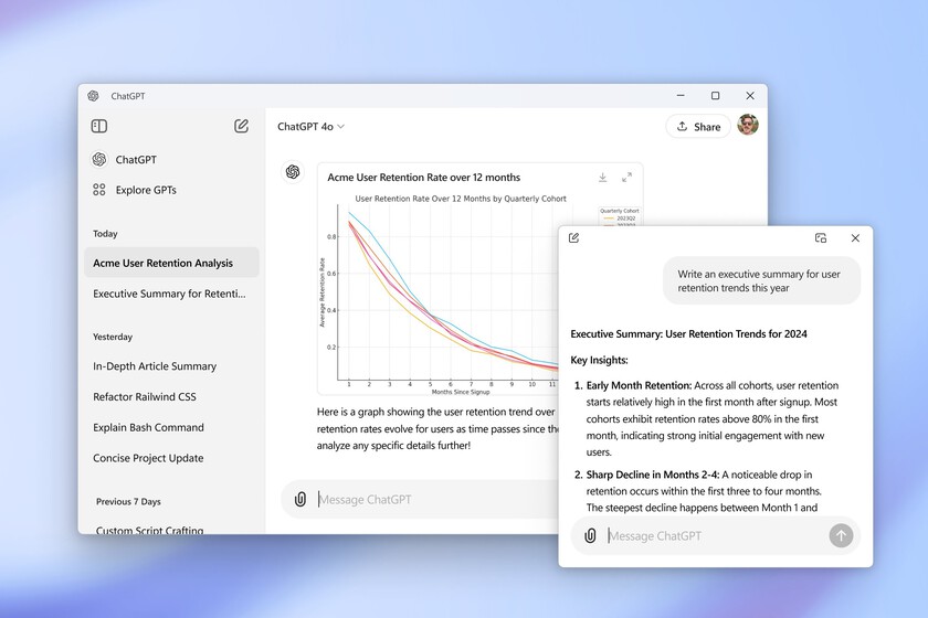 Si nos enfocamos en las desventajas, ChatGPT para Windows se deja algunas características por el camino que sí están disponibles en macOS, como la posibilidad de usar la voz tanto para ingresar texto como para conversar con el chatbot. OpenAI dice que planea lanzar “la experiencia completa” para todos a finales de este año.